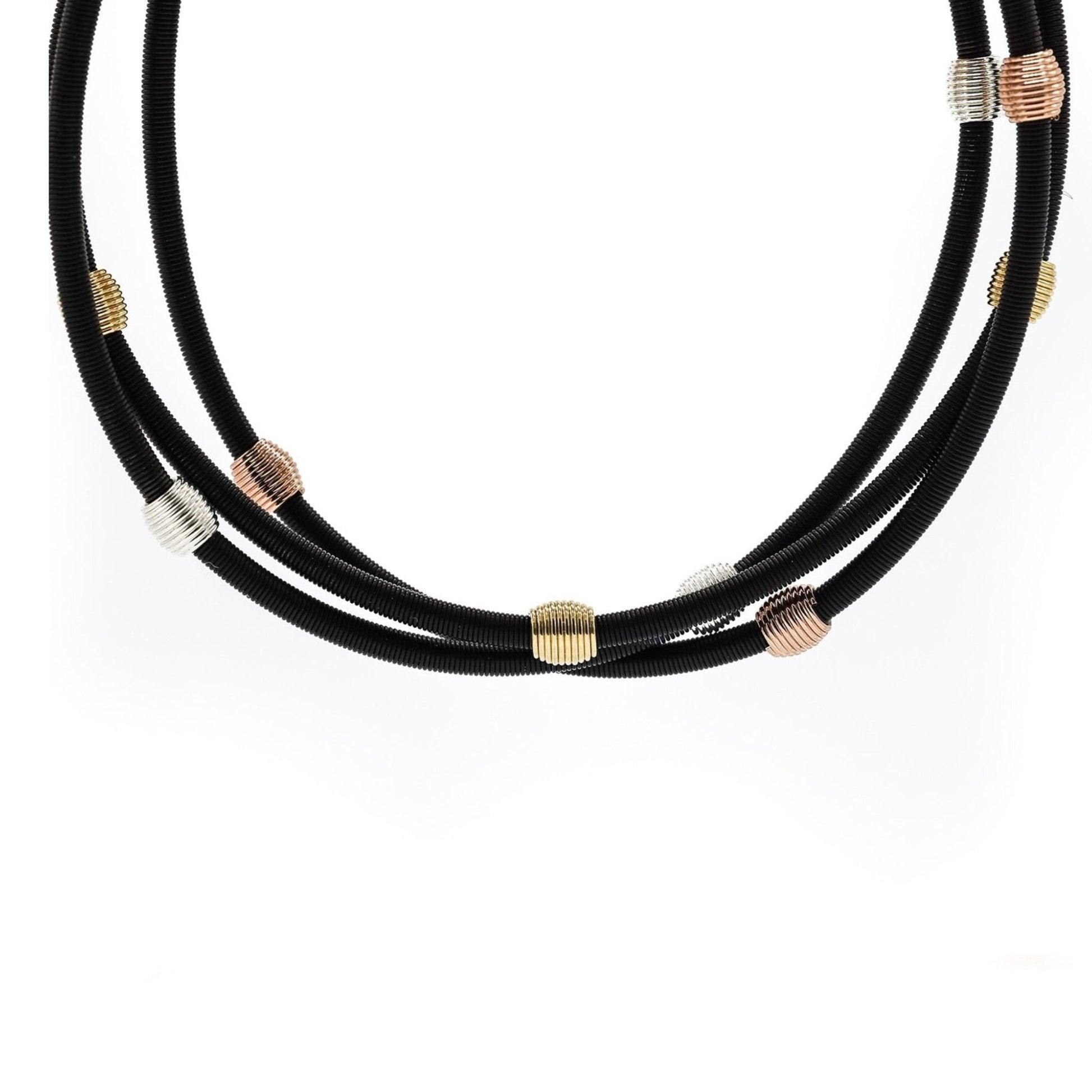 Each bracelet is adorned with spring beads in Silver, Black, Gold or Rose gold.
